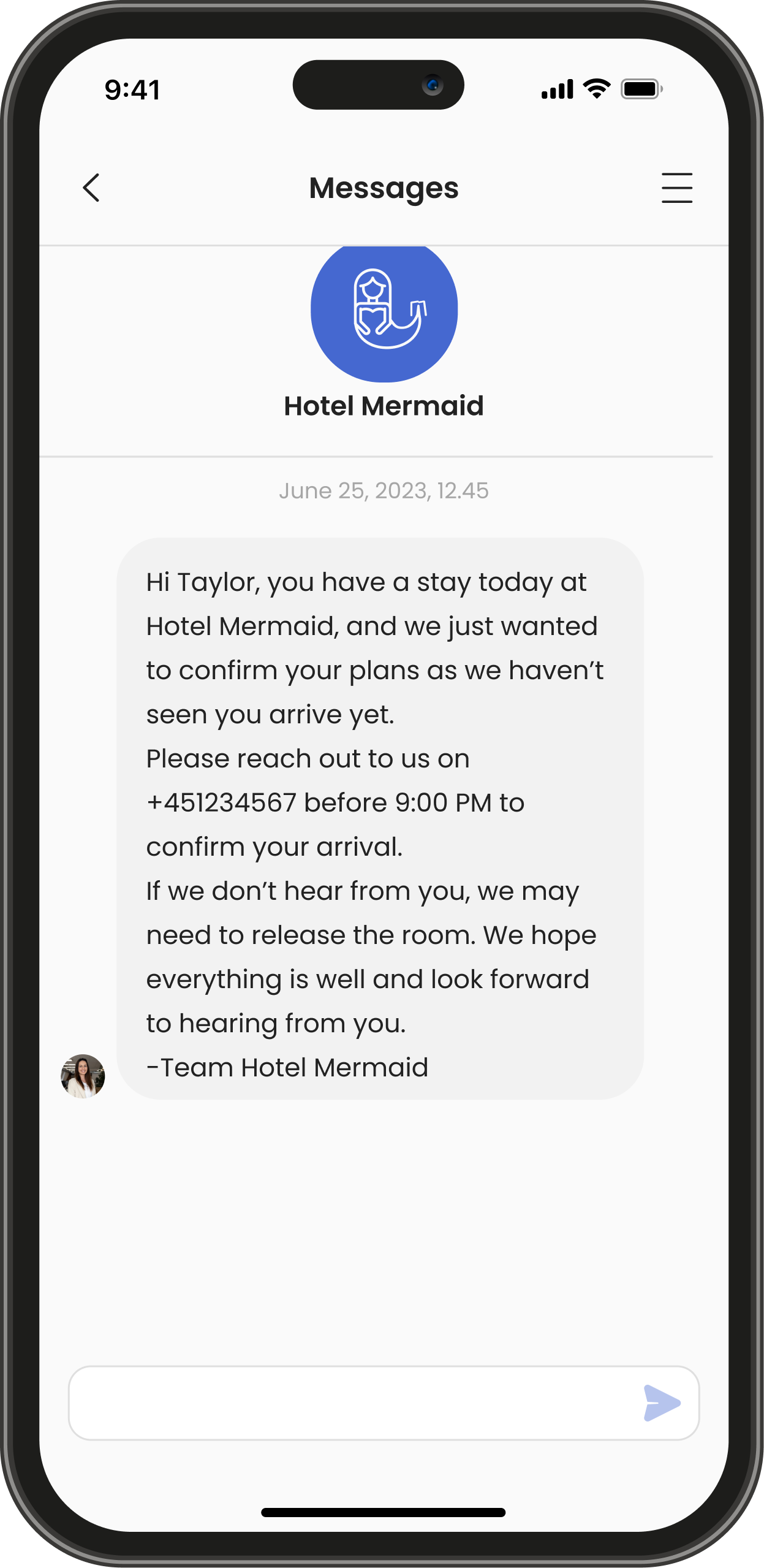 AeroGuest's advanced communication platform then does the active work. If a guest has not confirmed arrival by 6 PM on their arrival date, the system automatically detects it and sends them a message: