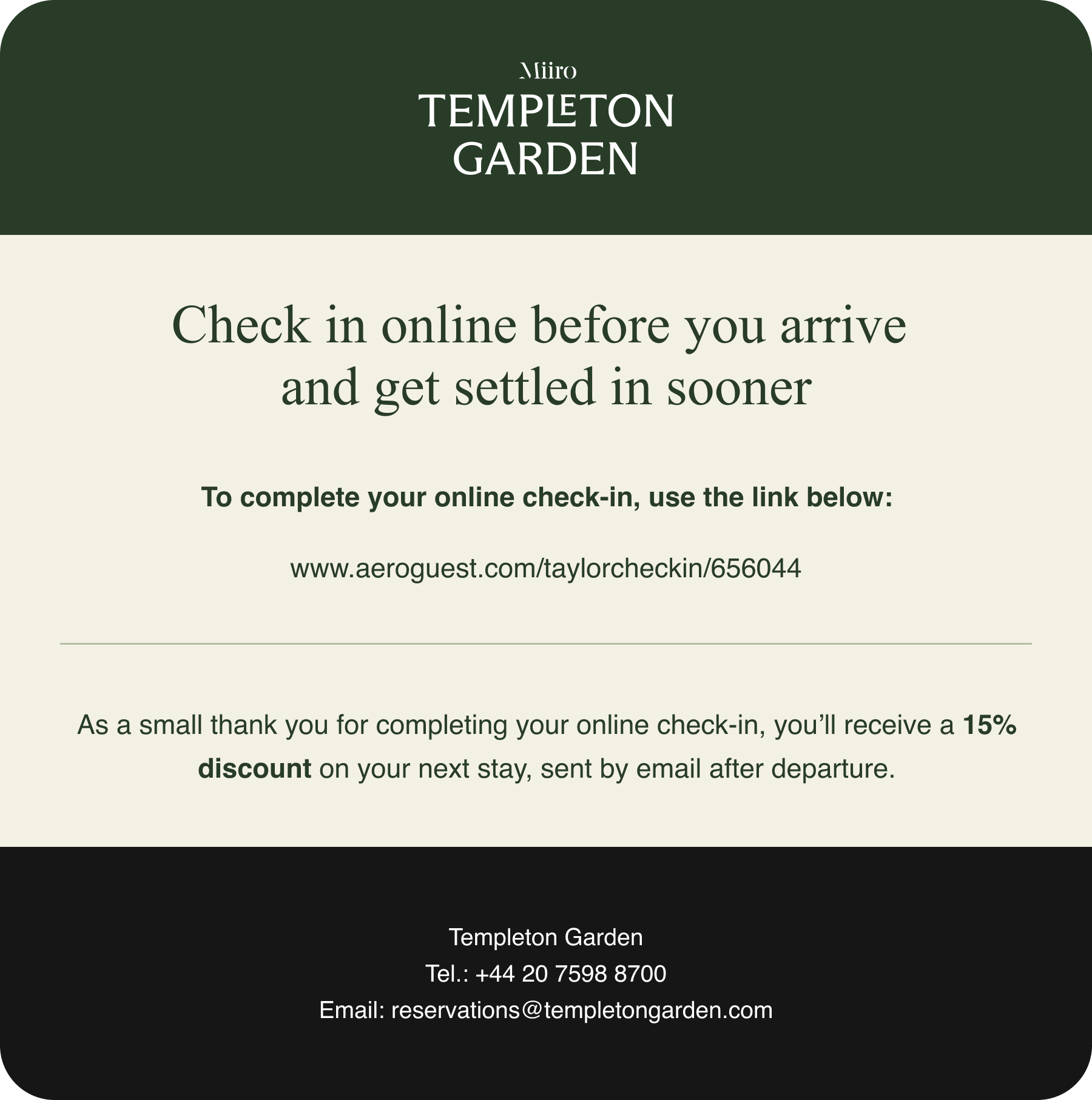 Templeton Garden had already done what many hotels aim for - beautifully designed, informative emails that reflect their brand and provide guests with everything they need before arrival.